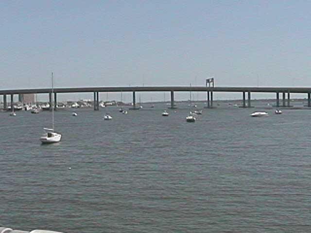 View of anchorage from bascule bridge across Ashley River facing Charleston. |