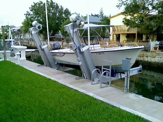 Dock with Boat Lift - King Fisher Canal 10000 lbs boat lift plus whip dockage. Non-liveaboard. $10/foot. Up to 43 ft. Call 954-426-9194. |